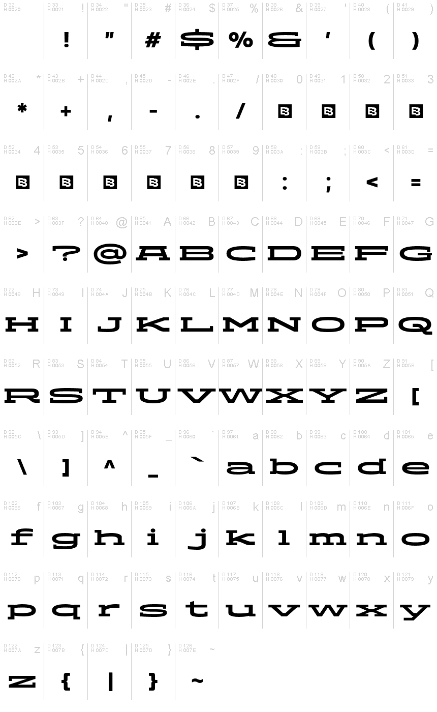 Its wide letterforms create a bold presence while maintaining legibility, making it ideal for headlines, posters, and branding materials. The unique slab serifs add a touch of modernity to its classic design, making it suitable for contemporary graphic design projects.
