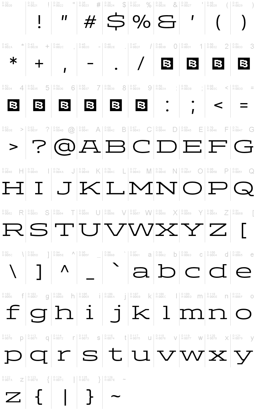 Si prega di utilizzare il menu a tendina per visualizzare le mappe di caratteri diversi contenuti in questo tipo di font.