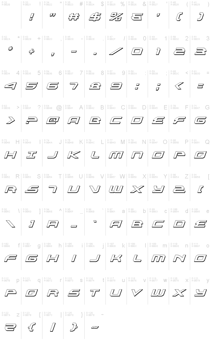 Si prega di utilizzare il menu a tendina per visualizzare le mappe di caratteri diversi contenuti in questo tipo di font.