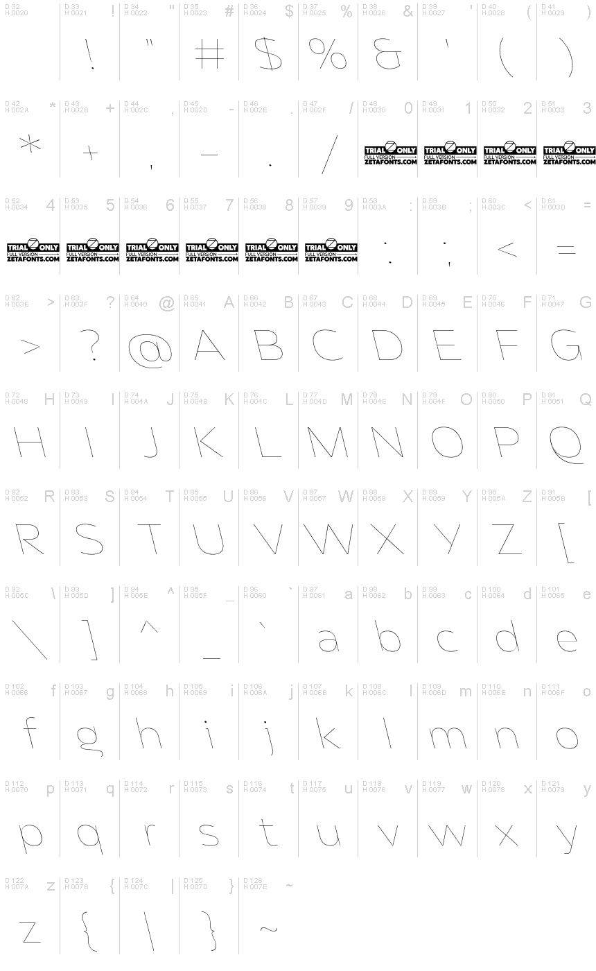 Si prega di utilizzare il menu a tendina per visualizzare le mappe di caratteri diversi contenuti in questo tipo di font.
