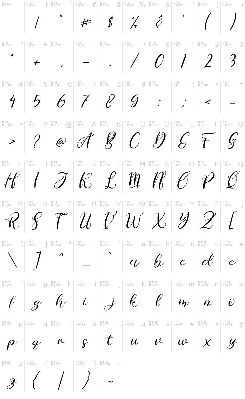 Si prega di utilizzare il menu a tendina per visualizzare le mappe di caratteri diversi contenuti in questo tipo di font.