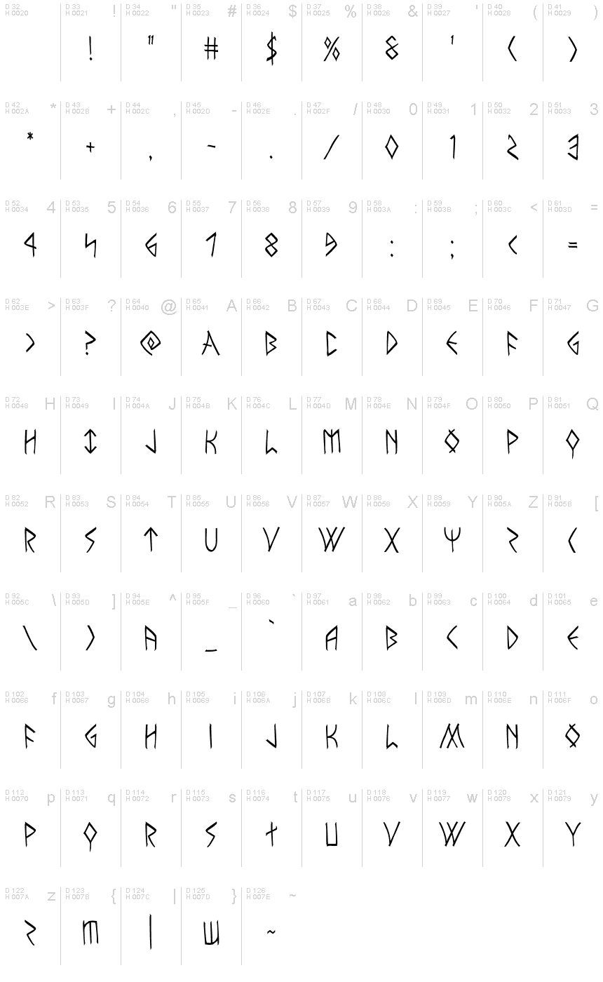 Si prega di utilizzare il menu a tendina per visualizzare le mappe di caratteri diversi contenuti in questo tipo di font.