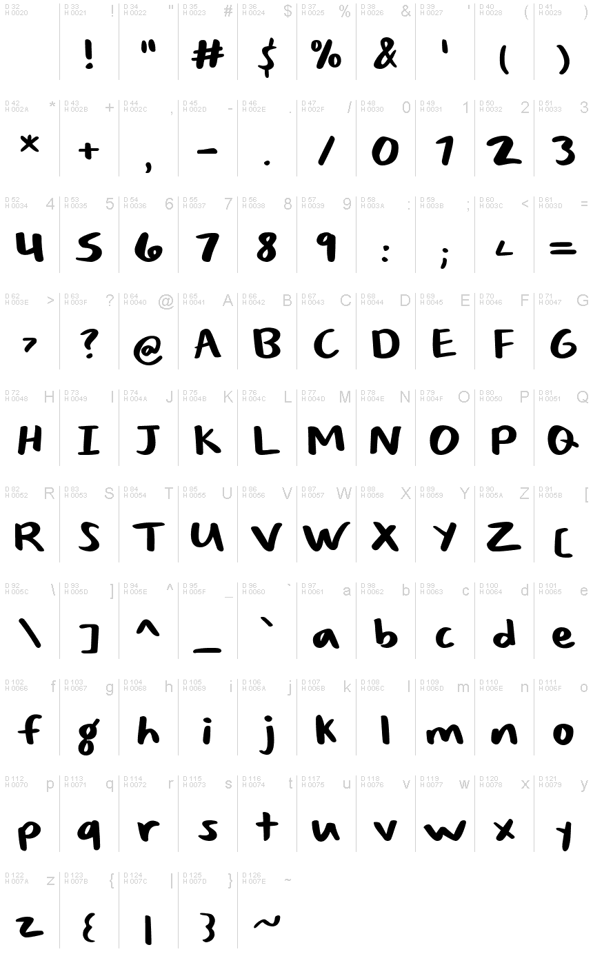 Si prega di utilizzare il menu a tendina per visualizzare le mappe di caratteri diversi contenuti in questo tipo di font.