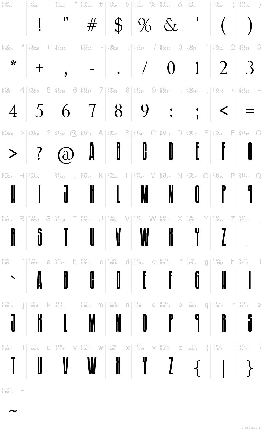 Si prega di utilizzare il menu a tendina per visualizzare le mappe di caratteri diversi contenuti in questo tipo di font.